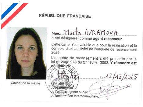Une lettre du maire a due être déposée (ou le sera) dans votre boîte aux lettres pour vous informer de l’opération. Puis, Marta Avramova, agent recenseur recruté par la commune, vous fournira une notice internet, soit dans votre boîte aux lettres, soit en main propre. Suivez simplement les instructions qui y sont indiquées pour vous recenser en ligne. Ce document est indispensable, gardez-le précieusement.