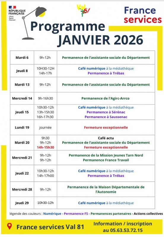Toutes les informations à l'adresse suivante : http://mediathequeval81.com/
