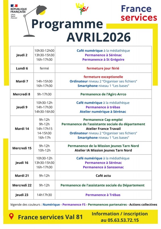 Agenda France Services Avril 2026